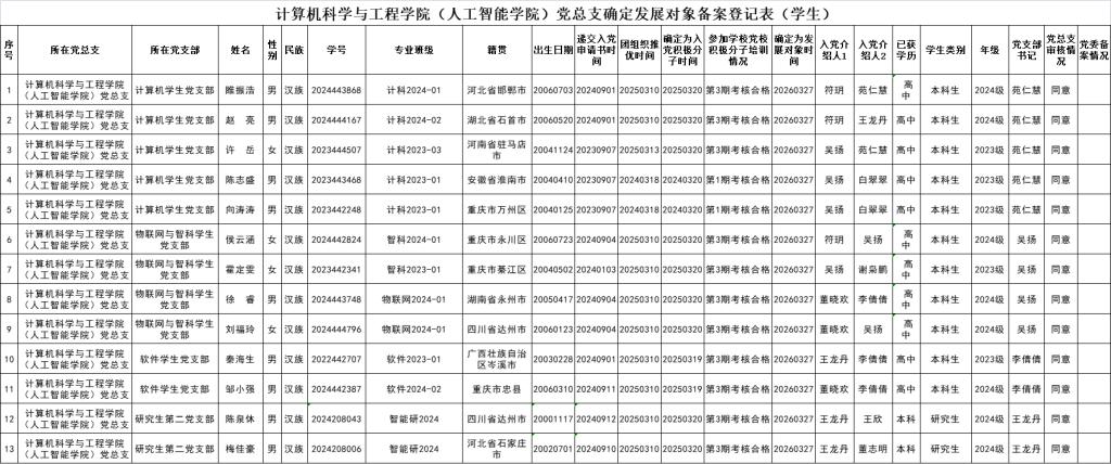 计算机科学与工程学院(人工智能学院)党总支2026年上半年确定发展对象公示